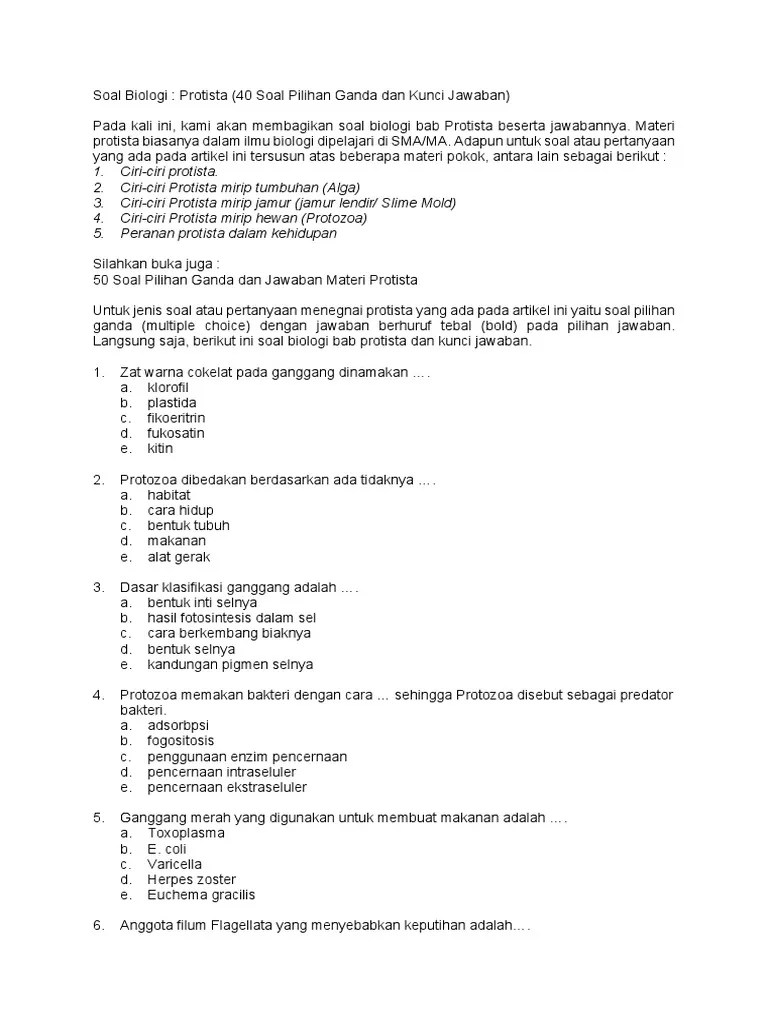 Simak latihan soal untuk kelas x sma beserta dengan kunci jawabannya. Soal biologi kelas 10 tentang protista & kunci jawaban a. Protista yang mirip dengan hewan disebut dengan protozoa, adjarian. Bapak/ibu tentang "penyusunan modul pencemaran air berdasarkan hasil penelitian untuk siswa sma kelas x". Jawab soal biologi kelas 10 .